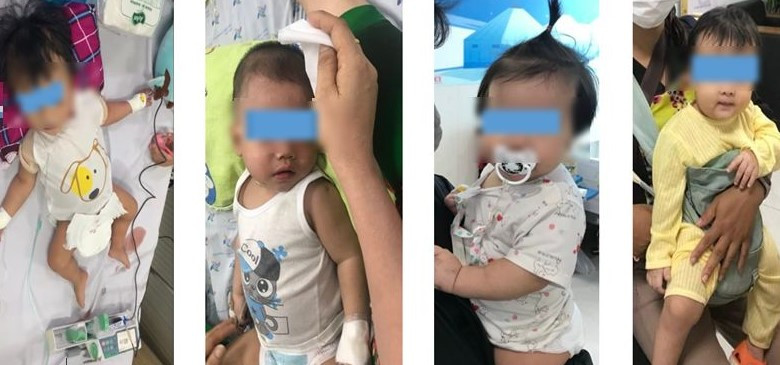 Trường hợp đầu tiên là bé trai 11 tháng tuổi, sống ở Tiền Giang. Bệnh sử ghi nhận trẻ bị sốt cao liên tục 4 ngày, tiêu chảy nhiều lần. Tại phòng khám tư gần nhà, trẻ được chẩn đoán tiêu chảy nhiễm trùng và cho uống thuốc (không rõ loại).