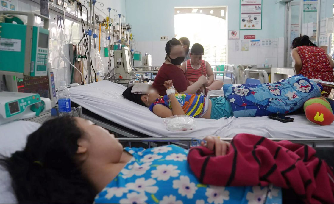Đáng chú ý, một bé gái 8 tháng tuổi, ở Đồng Tháp rơi vào nguy kịch ngay khi nhập bệnh viện tuyến dưới. Trước đó, trẻ sốt cao liên tục 3 ngày, ho sổ mũi, ói nhiều lần ra dịch lợn cợn nâu, bụng chướng, nổi chấm xuất huyết trên da. Gia đình đưa trẻ đi cấp cứu ở bệnh viện địa phương.