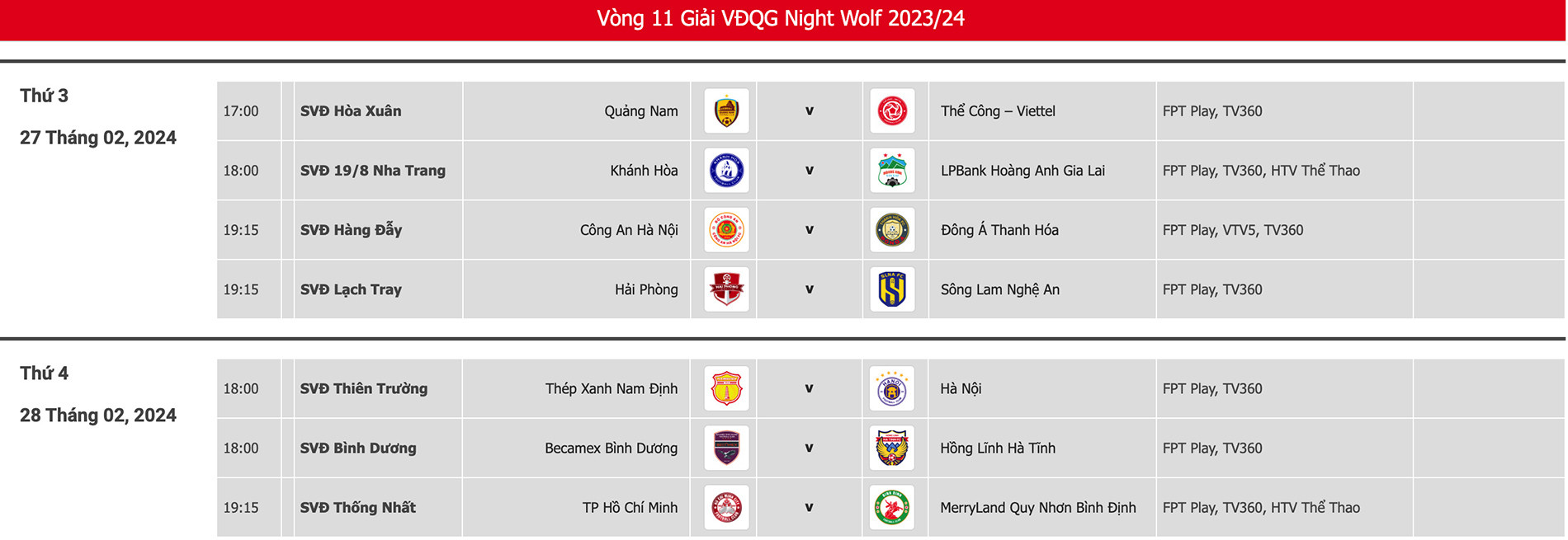 Ở hai trận đấu còn lại, Bình Dương tiếp đón Hà Tĩnh đang có phong độ cao với 3 chiến thắng liên tiếp, trong khi TP.HCM trở về sân nhà gặp đối thủ khó chơi Bình Định.