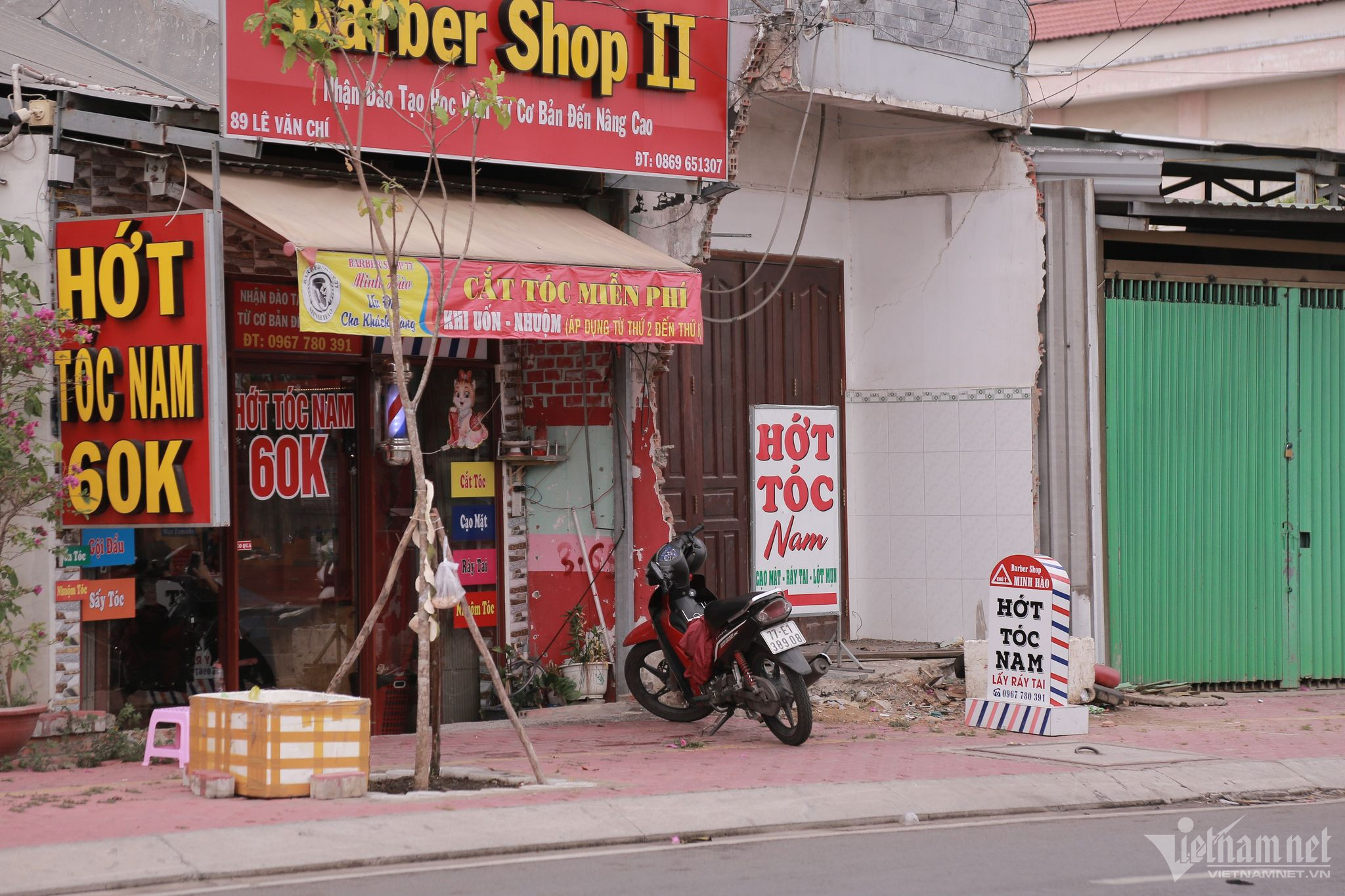 Cũng trên tuyến đường này, một chủ tiệm cắt tóc cũng thiết kế nhái một cột mốc giao thông bắt mắt hơn để làm bảng hiệu quảng cáo tiệm. Cột mốc này được đặt giữa phần đường dành cho người đi bộ gây chú ý cho người tham gia giao thông.