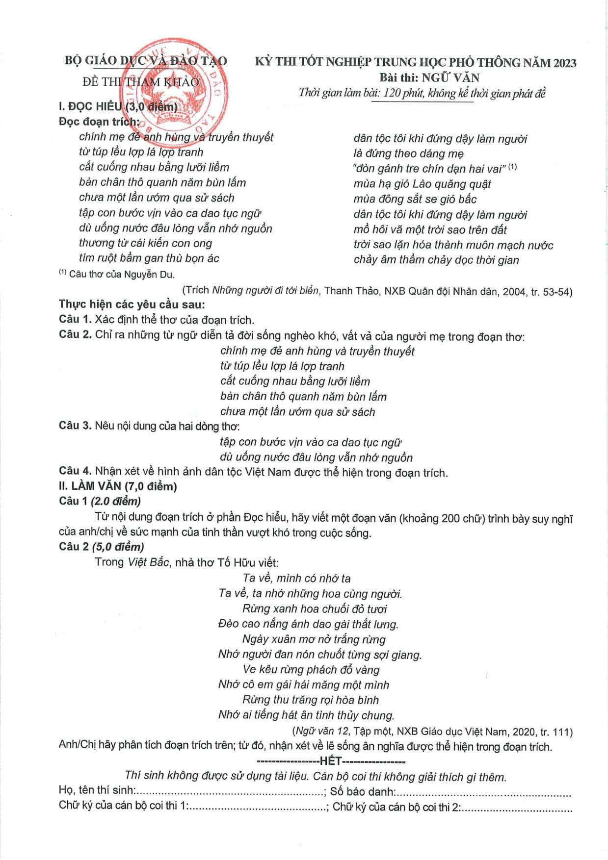 Sáng 1/3, Bộ GD-ĐT công bố đề thi tham khảo môn Ngữ văn kỳ thi tốt nghiệp THPT năm 2023.