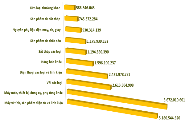 Xuất khẩu vi tính, sản phẩm điện tử và linh kiện của Việt Nam tiếp tục tăng tưởng ở mức 2 con số, trong đó Mỹ vẫn là thị trường chính.