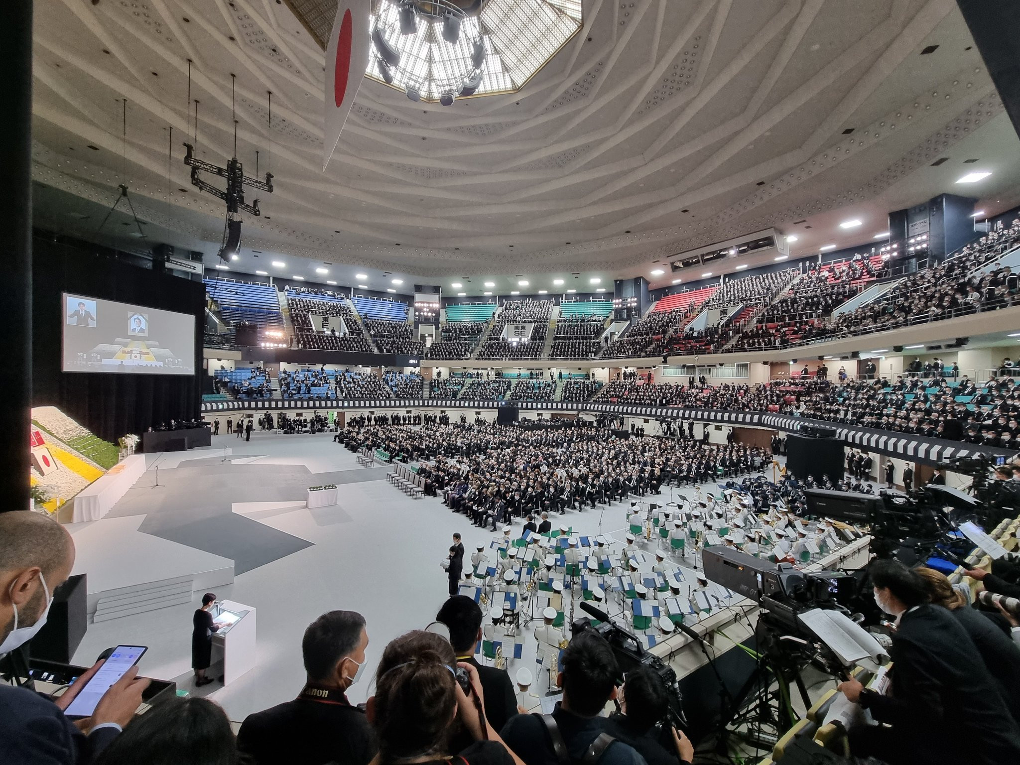 Tang lễ của cựu Thủ tướng Abe Shinzo đã chính thức bắt đầu khi phu nhân Akie đưa chiếc hộp gỗ đựng lọ tro cốt của chồng bà vào nơi tổ chức tang lễ. Các binh sĩ Nhật Bản đã bắn 19 phát đại bác trong lúc tro cốt ông Abe được đưa vào tòa nhà Budokan.