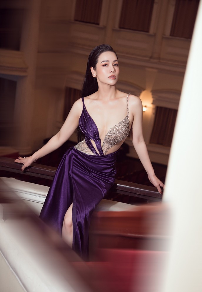 Xuất hiện với bộ váy của nhà thiết kế Thượng Gia Kỳ, cô trở thành tâm điểm chú ý với hình ảnh sang trọng. Những đường nét cắt xẻ, đính đá tinh tế của trang phục giúp tôn dáng và làn da trắng của nữ diễn viên.