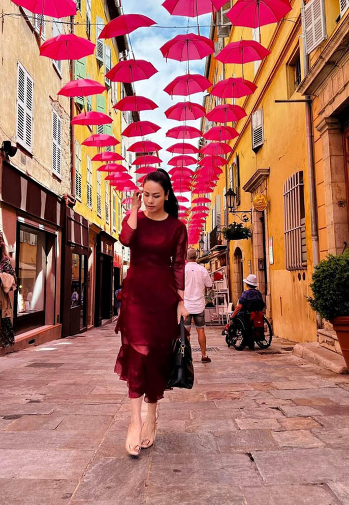 Ở tuổi 37, Nhật Kim Anh được khen trẻ, sắc vóc nổi bật. Xuất hiện trong các sự kiện lớn nhỏ, nữ diễn viên luôn nổi bật giữa các khách mời. Cô chuộng những thiết kế cắt xẻ, đính đá khoe 3 vòng gợi cảm.