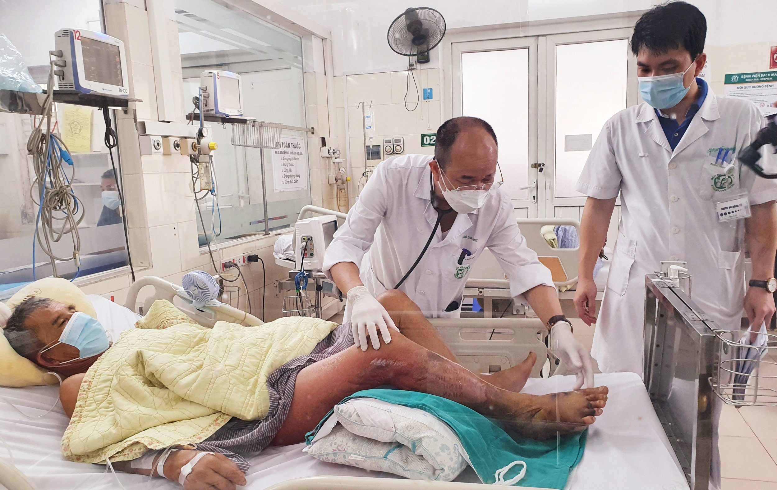 Khoảng 10 ngày trước vào viện, ông L. ở Phú Thọ có mổ lợn. Sau khoảng 1 tuần, ông có biểu hiện sốt cao và nổi ban khắp người. Vào viện, ông đã bị nhiễm khuẩn nặng, thở nhanh.