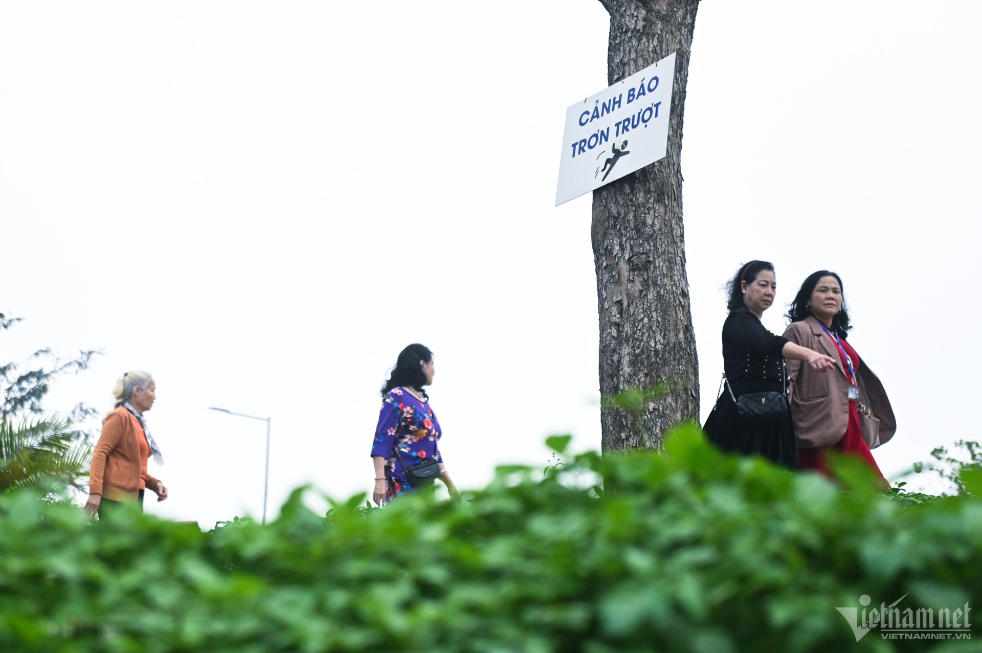 Chị Dương (cư dân sống gần công viên) phàn nàn, khu vực sân chơi cho trẻ có treo biển cảnh báo nguy hiểm khiến mọi người không hiểu nguy hiểm ở chỗ nào.