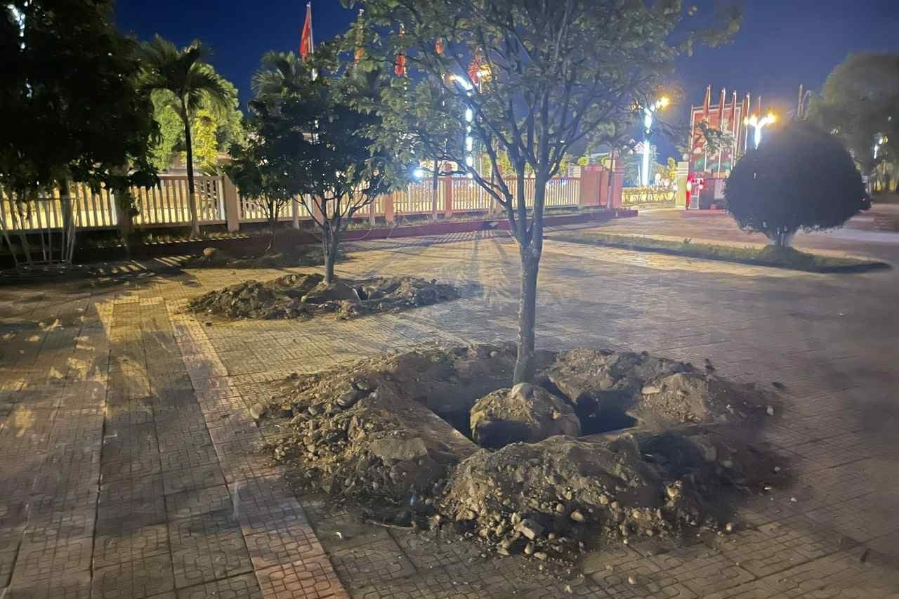Sau khi chặt hạ, 6 cây đã được vận chuyển ra khỏi hiện trường, để lại mặt đất những gốc rễ trơ trọi. Ngay góc sân bên trái sát gần trụ sở, một cây rất lớn đã được cưa hạ, cắt thành nhiều khúc, nằm ngổn ngang trong khuôn viên ủy ban.