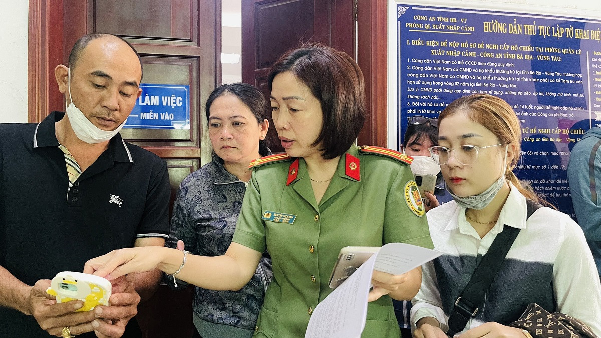 Thượng tá Nguyễn Thị Hoàng Yến - Trưởng Phòng Quản lý xuất nhập cảnh, Công an tỉnh Bà Rịa - Vũng Tàu cho biết, số lượng hồ sơ trong ngày tập trung khá đông, nhưng phòng đã bố trí cán bộ làm việc, không để tồn đọng cũng như sai sót trong quá trình tiếp nhận, xử lý hồ sơ.