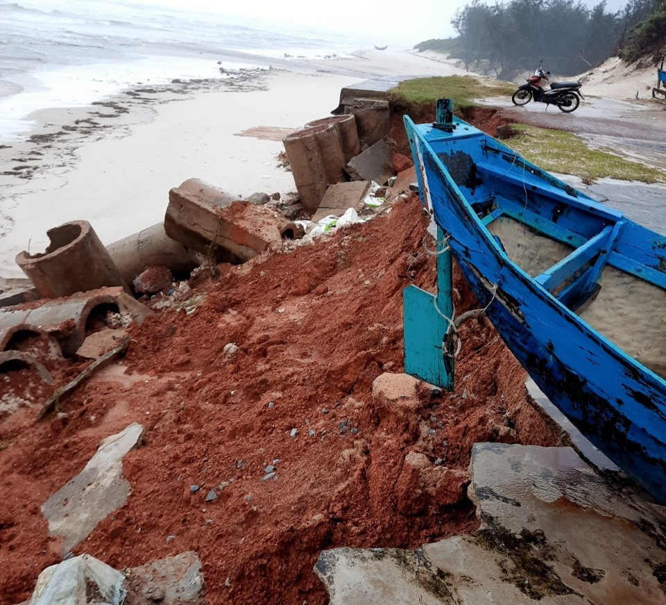 Trước đó, mưa lớn những ngày qua khiến một số bờ kè tại Quảng Bình có dấu hiệu bị sạt lở, đe dọa đến tài sản của bà con nông dân.