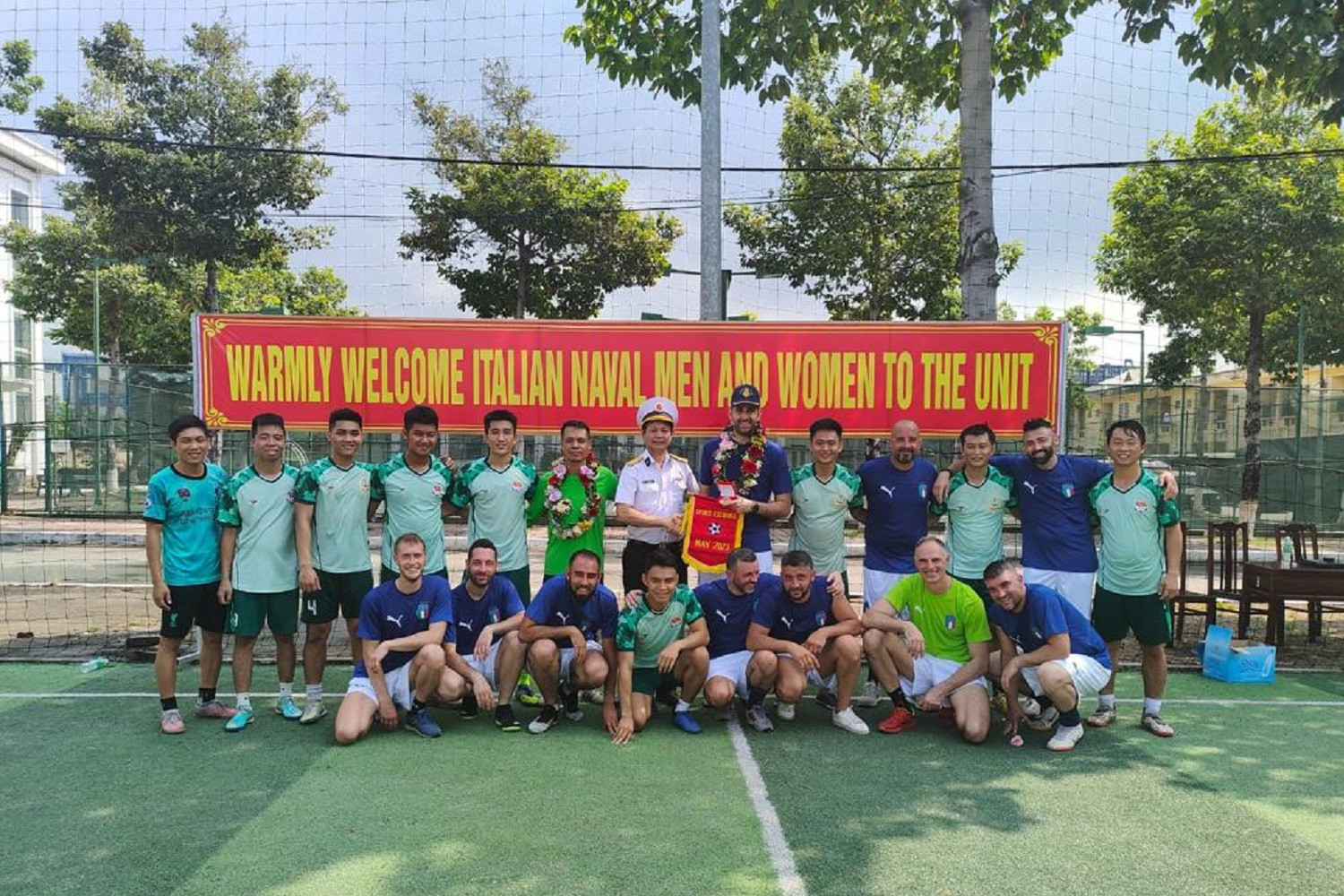 Trước đó vào ngày 10/5, các thủy thủ tàu tuần tra Francesco Morosini đã có trận cầu giao hữu với các binh sĩ Hải quân Việt Nam.