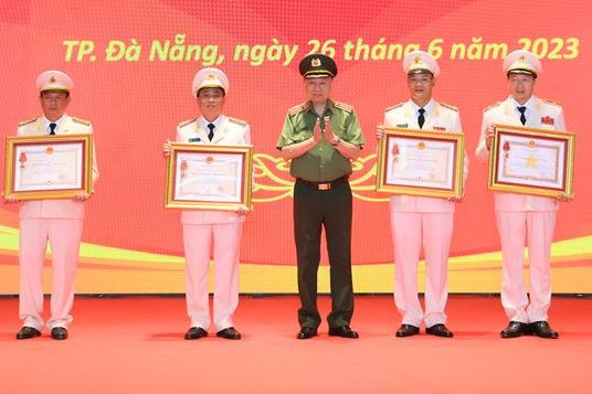 Bộ trưởng Tô Lâm biểu dương những kết quả, chiến công, thành tích xuất sắc trên các lĩnh vực công tác mà lực lượng Công an nhân dân đã đạt trong 6 tháng đầu năm 2023 và nửa đầu nhiệm kỳ Đại hội 13 của Đảng.