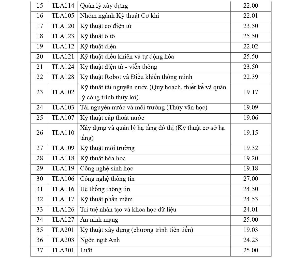 Trong khi một số ngành lấy điểm chuẩn khá cao như Công nghệ thông tin (26 điểm), Logistics và quản lý chuỗi cung ứng (25,5), nhiều ngành lấy 18, tức trung bình 6 điểm mỗi môn là trúng tuyển mà không cần đến điểm ưu tiên, chẳng hạn Quản lý năng lượng, Kỹ thuật nhiệt, Công nghệ kỹ thuật năng lượng, Công nghệ kỹ thuật môi trường…