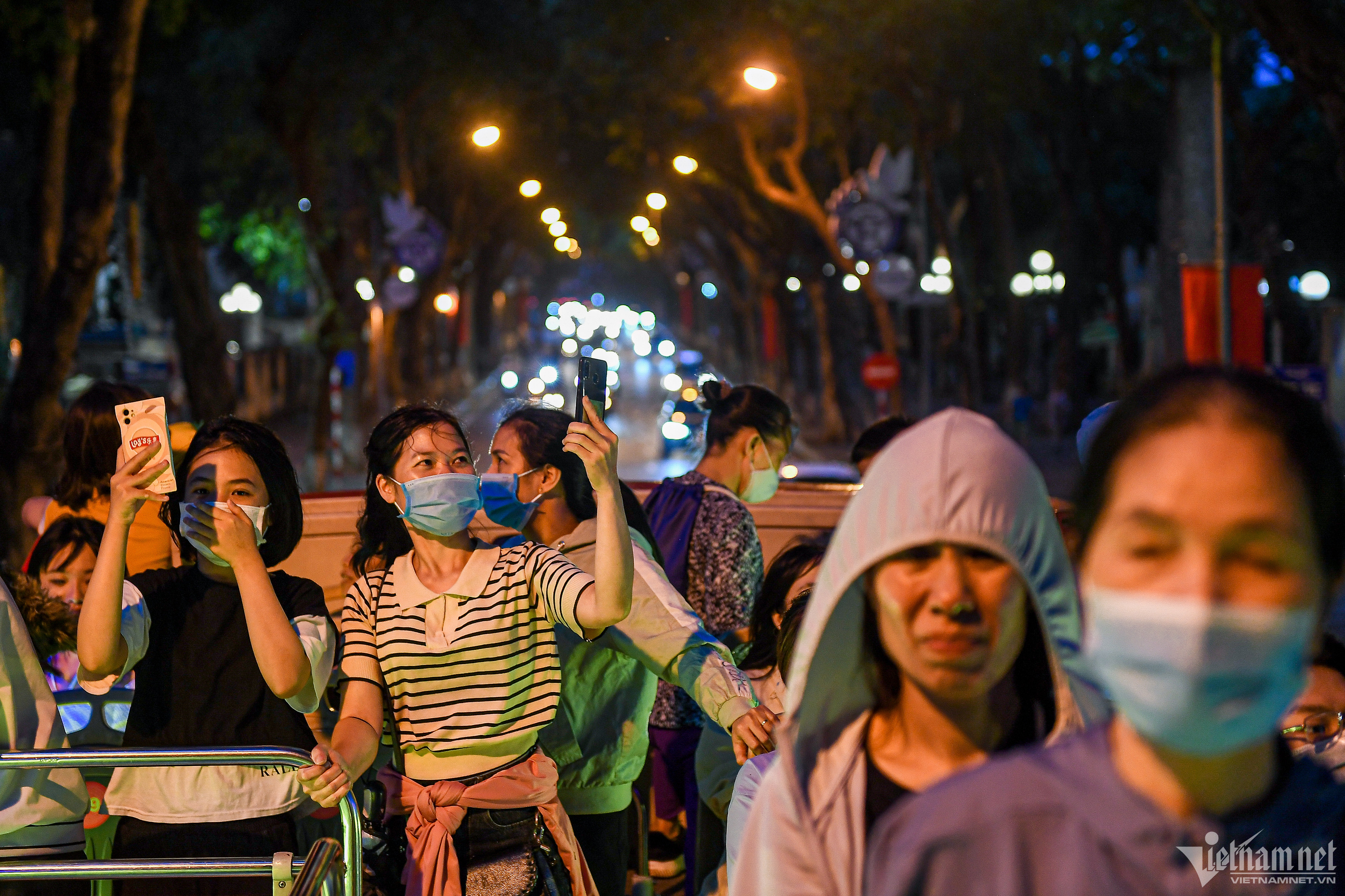 Tới 19h tối 30/4, vẫn còn khoảng 200 người dân và du khách xếp hàng chờ trải nghiệm xe buýt hai tầng miễn phí, ngắm buổi đêm Hà Nội.