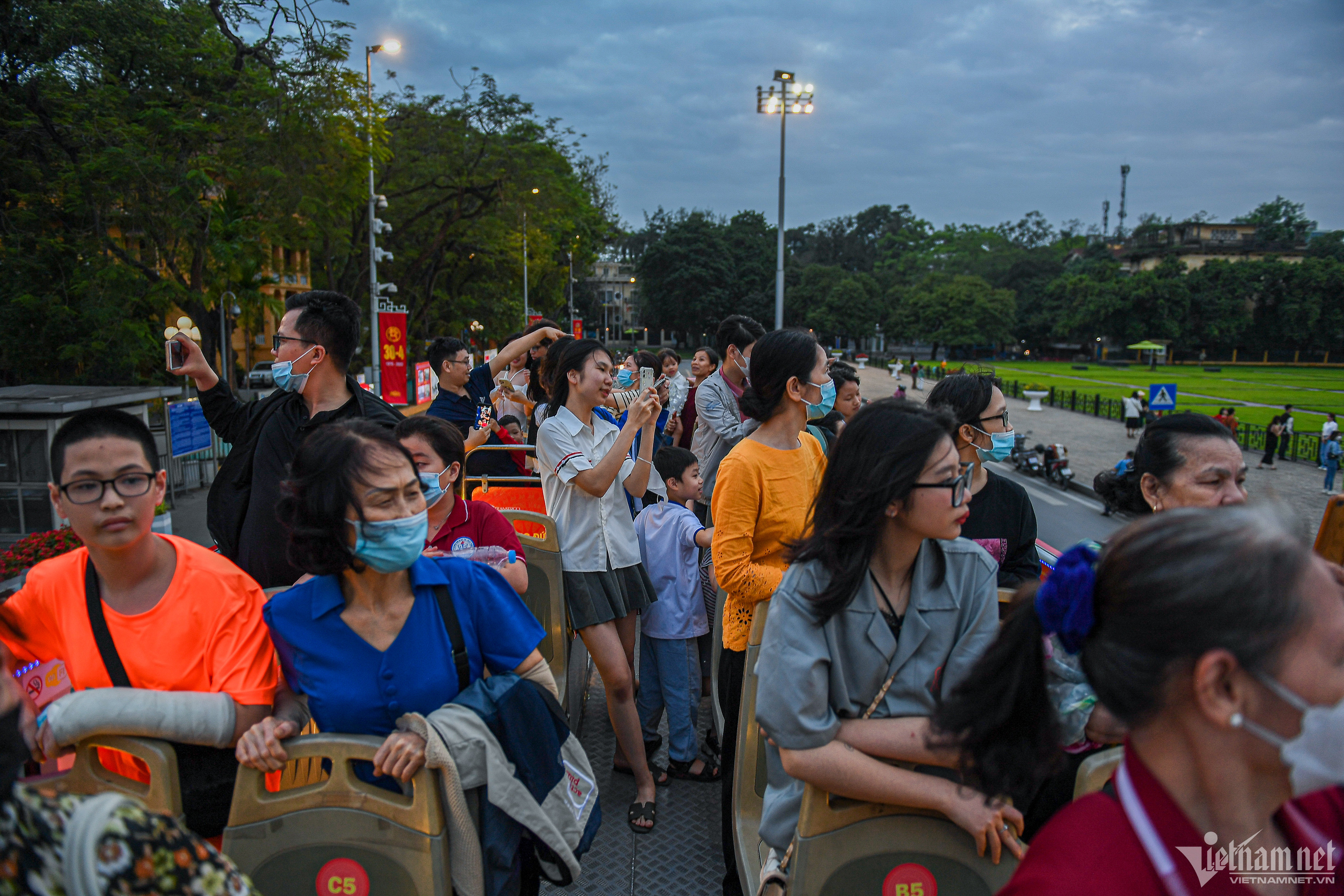 18h tối 30/4, khi chiếc xe buýt hai tầng từ đường Điện Biên Phủ tiến về đường Độc Lập, những vị khách trên xe vội vã giơ điện thoại, chăm chú hướng mắt về phía Quảng trường Ba Đình lịch sử và Lăng Chủ tịch Hồ Chí Minh. Cậu bé 9 tuổi Tuấn Kiệt (Đống Đa, Hà Nội) kéo áo bà, reo lên thích thú: "Bà ơi Lăng Bác kìa! Đẹp quá, con sẽ quay lại để bố mẹ con xem!". Người bà nựng yêu cháu trai: "Bõ công hai bà cháu xếp hàng từ 12h trưa nhé!".