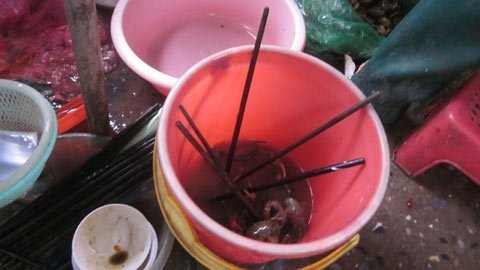 Một xô nước được dùng để rửa thịt cho rất nhiều lần khác nhau. Mỗi khi có khách