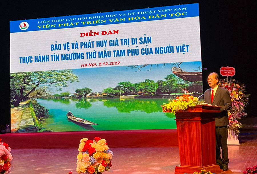 Ông Trần Văn Nam - Viện trưởng Viện Phát triển văn hóa dân tộc nhấn mạnh, diễn đàn được tổ chức nhằm xác định vai trò quan trọng của di sản văn hóa Thực hành tín ngưỡng thờ Mẫu Tam phủ của người Việt sau khi được UNESCO ghi danh và triển khai thực hiện những cam kết mà Thủ tướng đã ký với UNESCO về chương trình và hành động bảo vệ phát huy giá trị di sản tín ngưỡng thờ Mẫu,