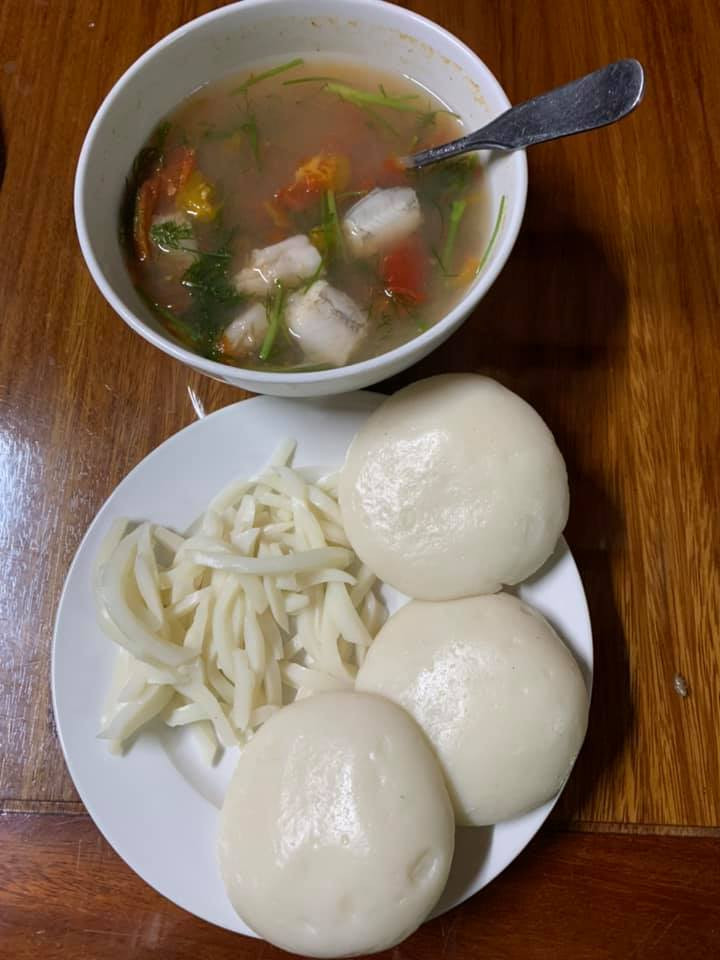 Hôm rồi, nhà tôi lại sáng chế món bánh đúc chan canh cá khoai cà chua thì là nóng nữa kia! Lạ. Mà ngon phết!