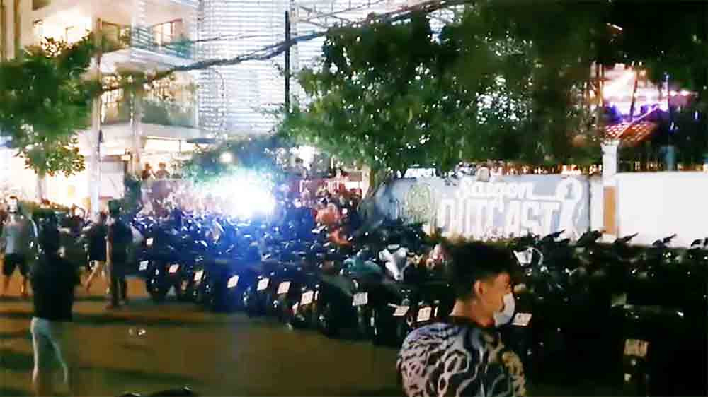 Lực lượng CSGT khi có mặt đã phối hợp cùng lực lượng địa phương lập tức phong toả quán, yêu cầu những người có mặt ngồi tại chỗ và tiến hành kiểm tra. Hơn 300 xe tay ga các loại và nhiều thanh, thiếu niên bị di chuyển về trụ sở ở đường Đồng Văn Cống, TP Thủ Đức để xác minh, xử lý.