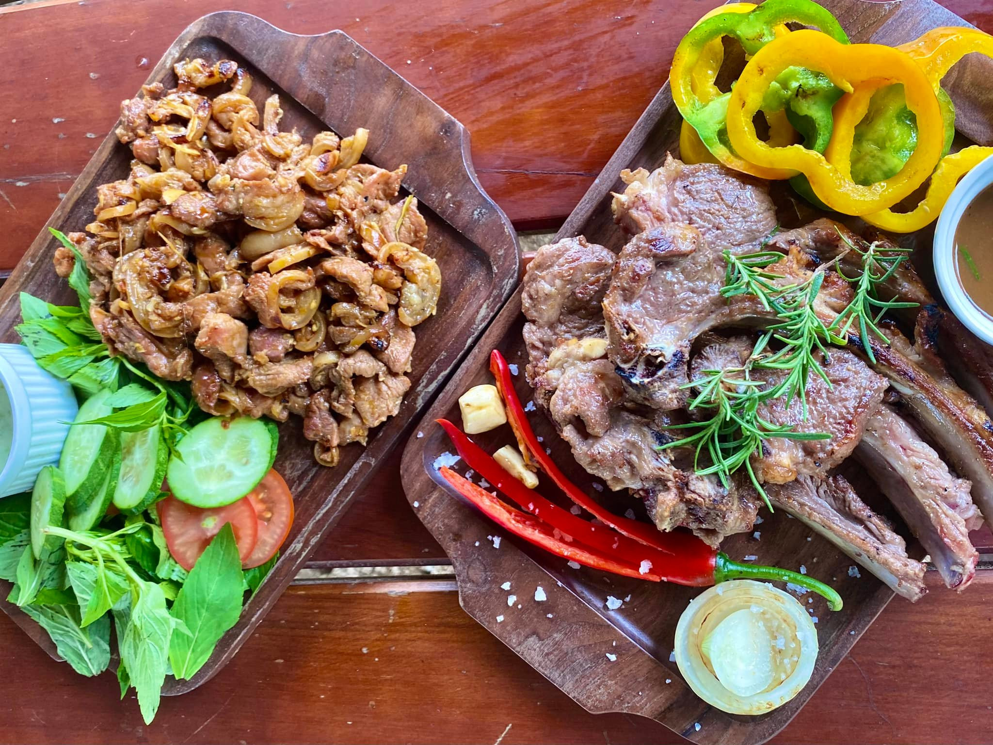 Đức Tài cũng tự tay vào bếp chuẩn bị nguyên liệu, nấu các món ăn dân dã hoặc đặc sản địa phương để phục vụ du khách như gà nướng, thịt nướng bánh hỏi, bánh xèo, cá hấp,… hay tiệc nướng ngoài trời.