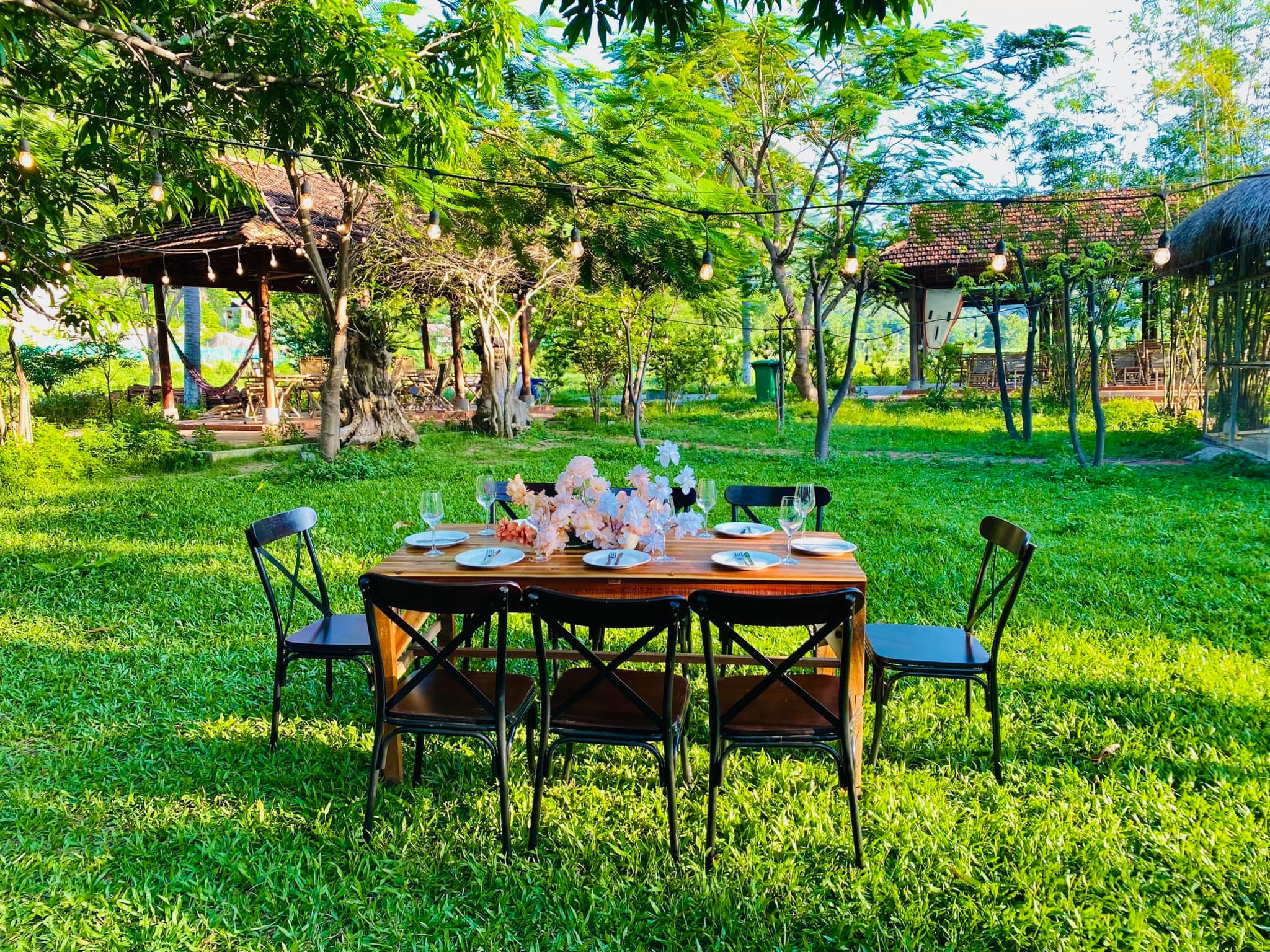 Tiểu cảnh, chòi lá,… được bố trí hài hòa, đẹp mắt xuyên suốt không gian du lịch này, phù hợp với các hoạt động trải nghiệm của cả người lớn và trẻ em.