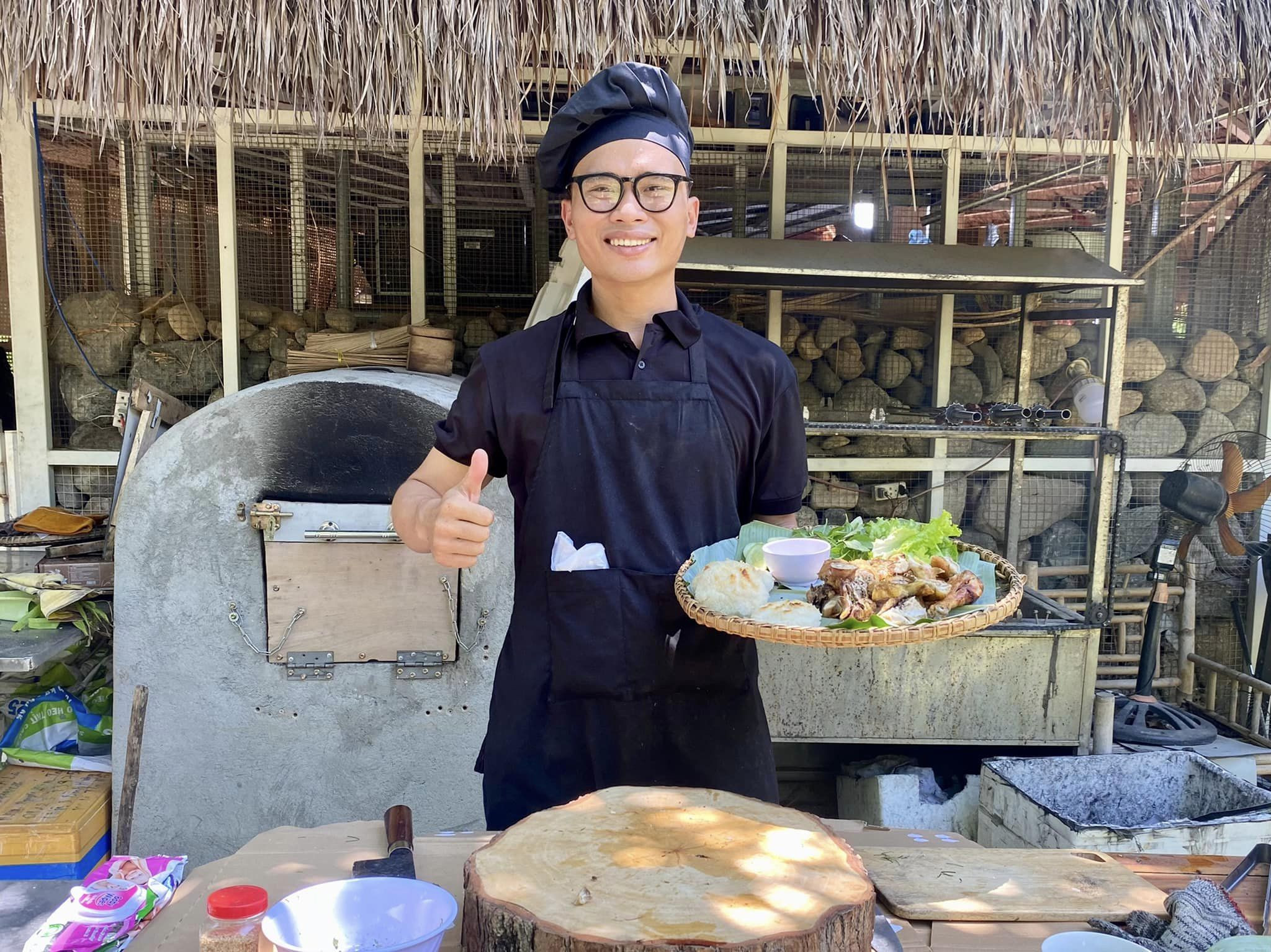 Đức Tài trực tiếp chế biến các bữa ăn đa dạng phục vụ khách tham quan.