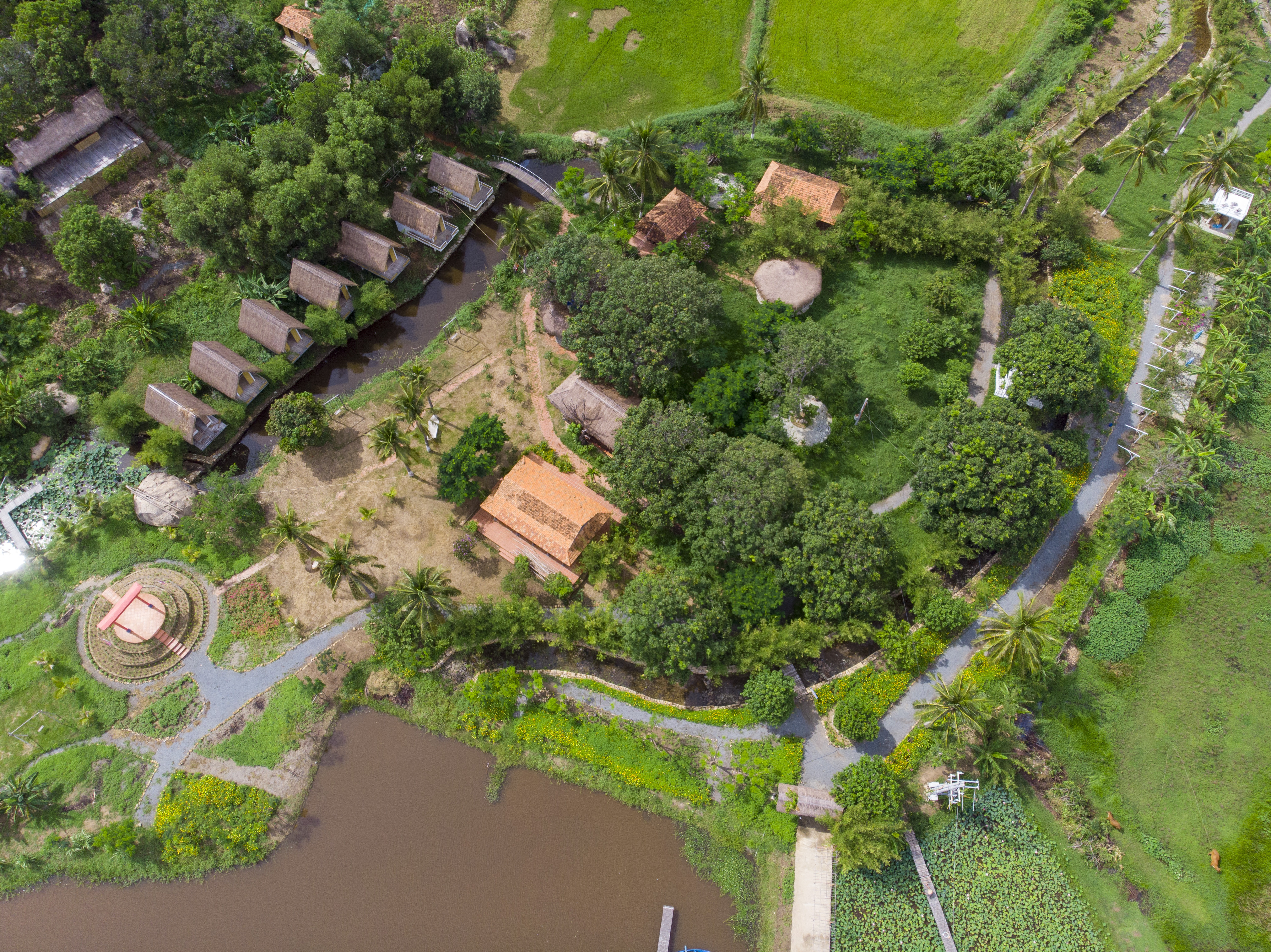 Toàn cảnh chốn du lịch xanh mát của Đức Tài và nhóm bạn nhìn từ trên cao.