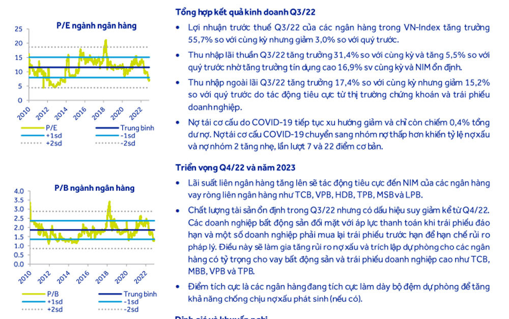 Tuy nhiên, theo ACBS, rủi ro giảm giá cổ phiếu ngành ngân hàng trong ngắn hạn gồm: tình trạng dòng vốn bị tắc nghẽn kéo dài gây ra khó khăn cho bất động sản và làm nợ xấu tăng cao; Fed tiếp tục tăng lãi suất.