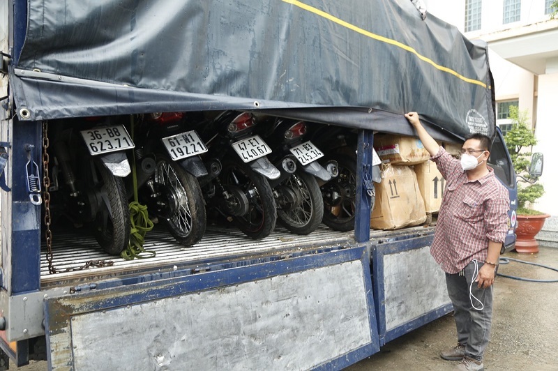 Sáng 22/3, sau khi gom được 5 xe thì Sơn liên hệ với Phong để vận chuyển về An Giang với giá 400 ngàn đồng/ chiếc. Phong thuê Tuấn hỗ trợ đưa lên xe tải để đi giao với giá 500 ngàn đồng/chuyến.