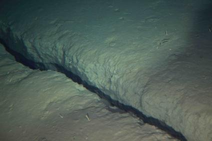 | Hình chụp vết nứt rộng 20cm kéo dài ít nhất hàng chục mét tại độ sâu hơn 3.000 mét ngày 10/08/2011. Nguồn: Norio Miyamoto, JAMSTEC |