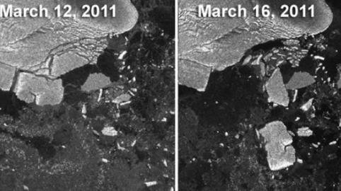 Hình chụp dãy núi băng Sulzberger bị vỡ ra. Nguồn: NASA |