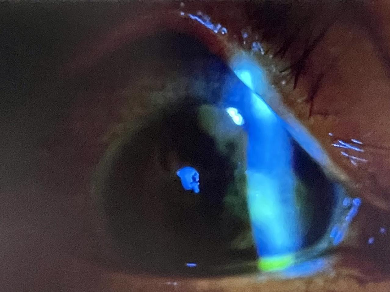 “Đây là một ca viêm kết mạc phức tạp, tiến triển rất nhanh. Hiện 2 mắt đều bị viêm nặng, bong trợt biểu mô giác mạc rộng, có nhiều giả mạc làm mắt sưng nề dữ dội, gây cảm giác đau nhức, rất khó chịu. Giả mạc làm cho thuốc khó ngấm được vào các tổ chức của mắt nên tác dụng điều trị bị hạn chế. Chính giả mạc cũng là tác nhân gây viêm trợt giác mạc làm mắt kích thích và giảm thị lực…”, BS. Trung cho hay.