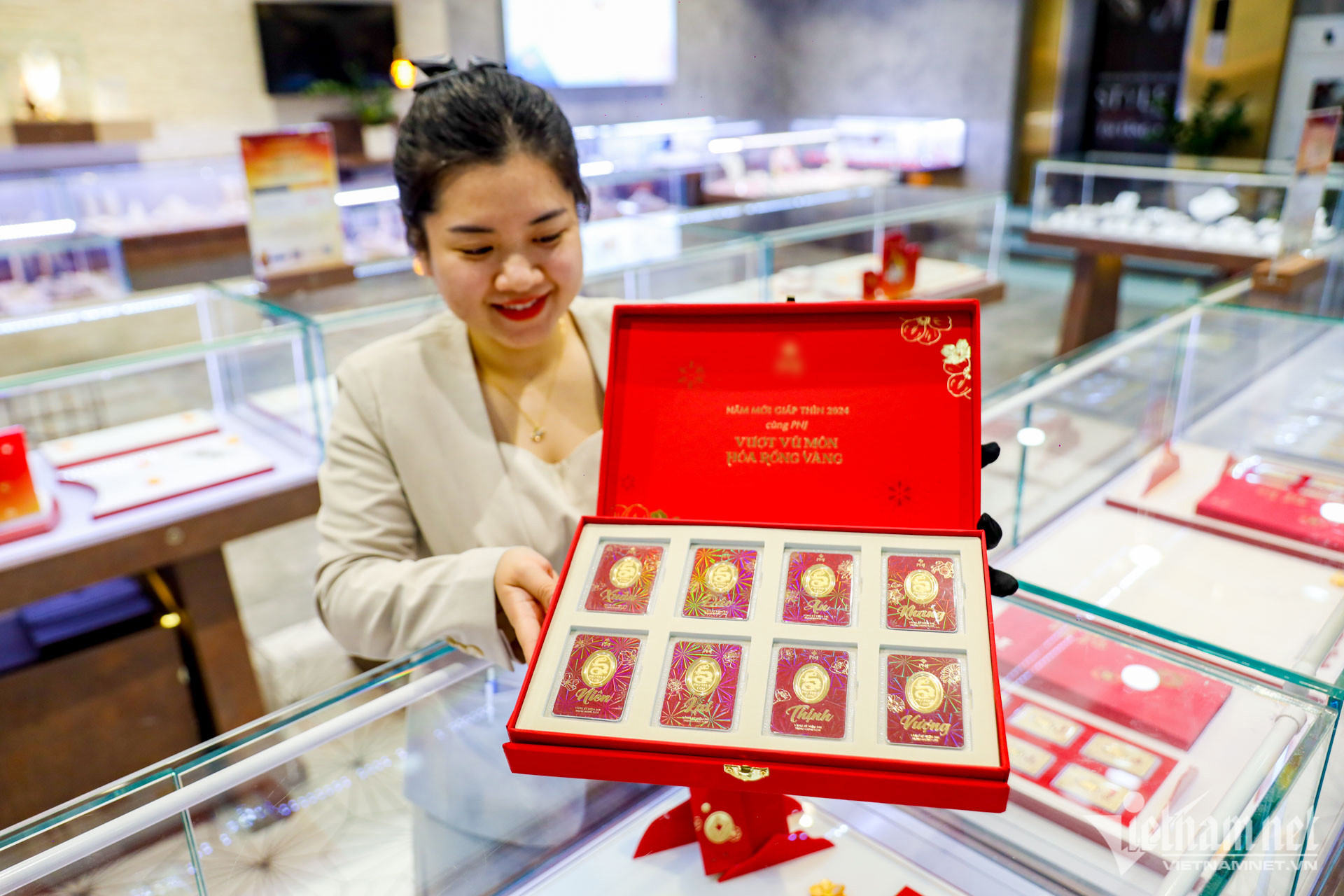 Tại một tiệm vàng ở phố Cầu Giấy (Hà Nội), nhân viên đang giới thiệu cho khách hàng loạt thiết kế trang sức, vàng tài lộc, quà tặng vàng phù hợp với nhiều người. Đặc biệt nhất là bộ sưu tập quà tặng "Kim Long Phi Vân" với hình tượng rồng vàng vươn mây độc đáo. Rồng gặp mây tựa cá gặp nước, ngụ ý cho một năm mới tràn ngập may mắn, thuận lợi. Ngoài ra, nó còn tượng trưng cho khát vọng và ý chí vươn lên mạnh mẽ để chinh phục những đỉnh cao mới.