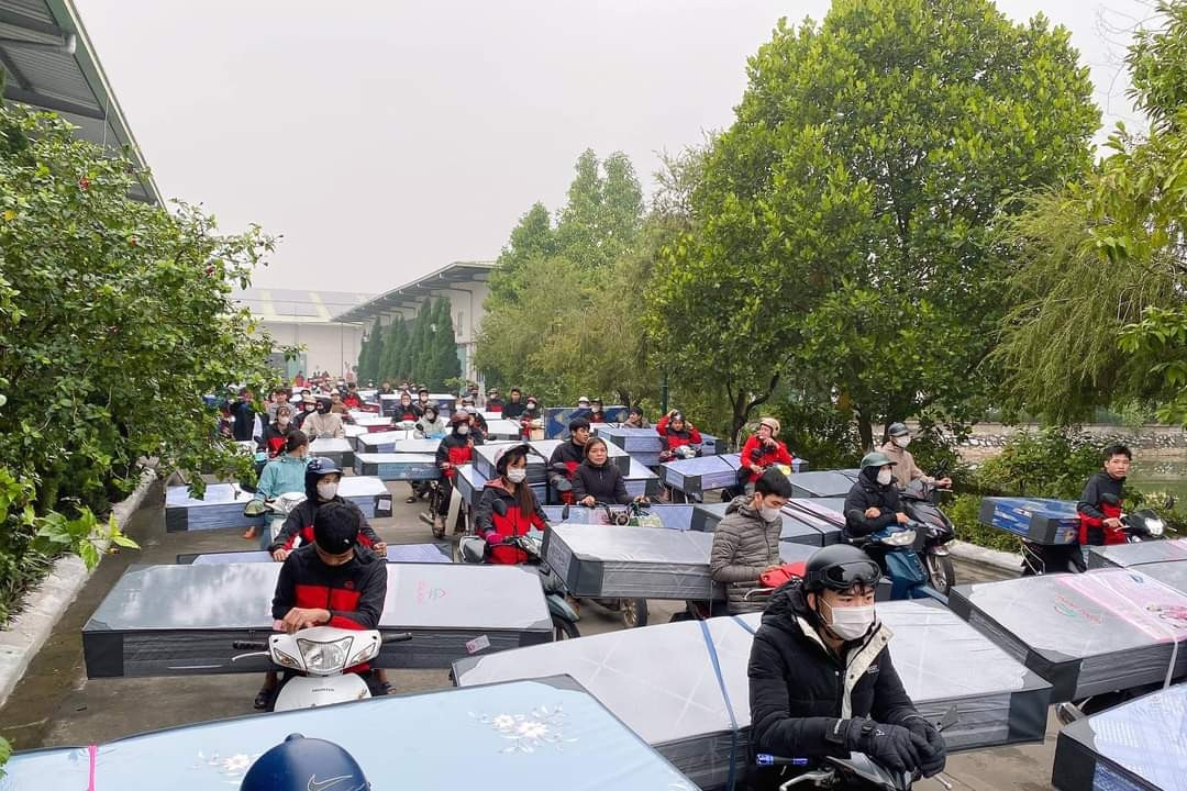 Đặc biệt, tất cả những món quà đó do chính người đứng đầu công ty đi mua và phân phát cho mọi người. Đại diện công ty này cho biết sẽ không mua bia mà thay vào đó sẽ tặng con gà để mọi người quây quần cùng gia đình.