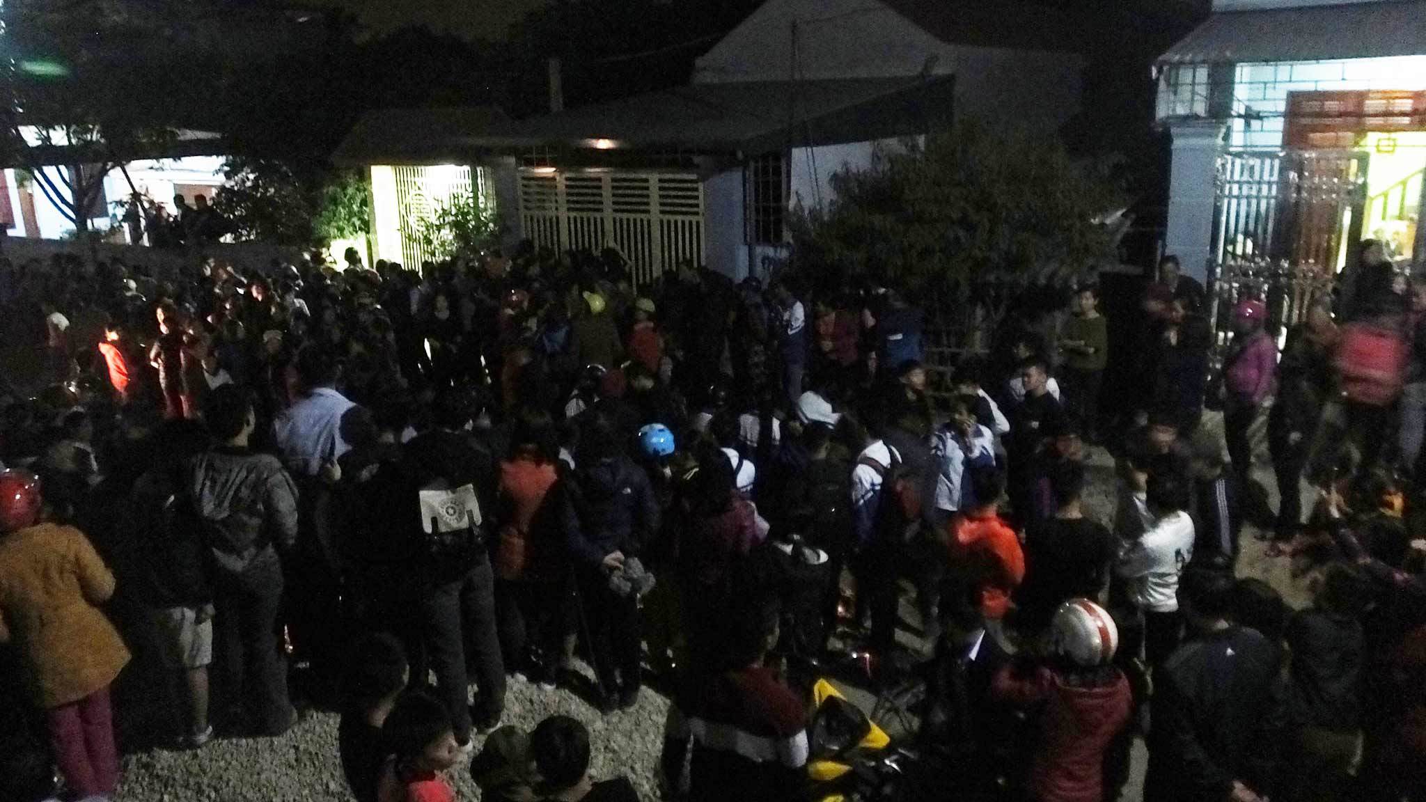 | Rất đông người dân tập trung tại nhà cháu bé. Ảnh: VietNamNet |