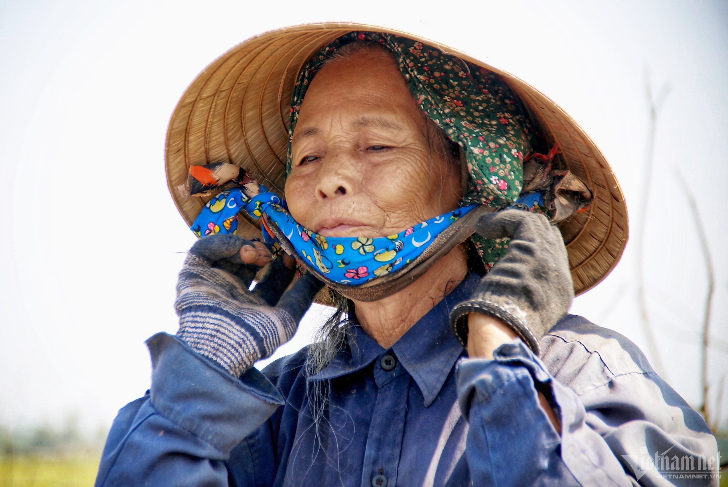 “Trời nắng, tôi dùng tấm xốp cùng túi gai che sau đầu. Đó là giải pháp tạm thời thôi chứ cũng không tránh được lâu. Tôi tranh thủ thu hoạch nhanh để về nhà trước 11h tránh nắng”, bà Trang nói.