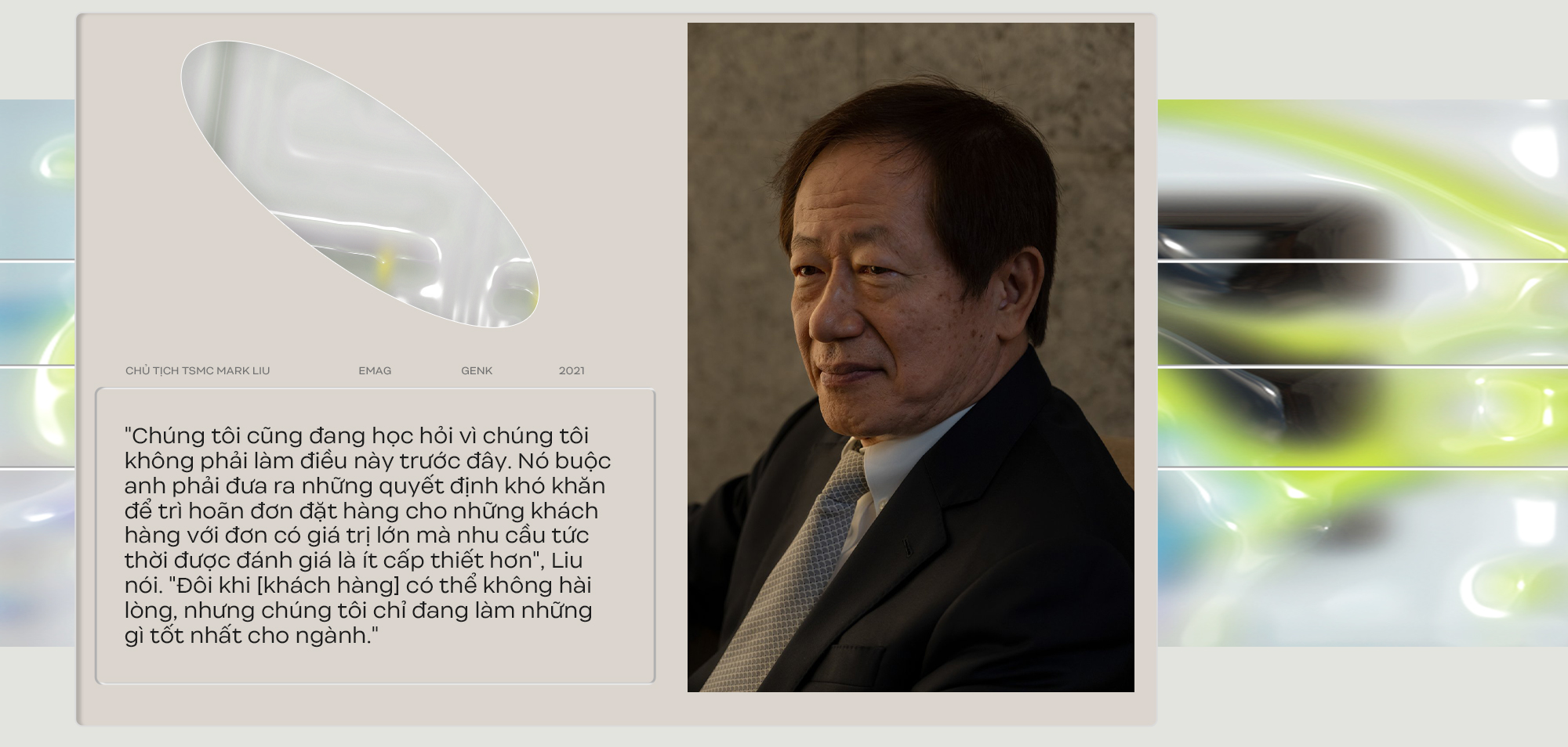 "Nhưng tôi đã nói với họ: 'Bạn là khách hàng của khách hàng của tôi. Làm thế nào tôi có thể [ưu tiên người khác] và không đưa cho bạn chip?'", Chủ tịch TSMC - Mark Liu - nói với TIME trong một cuộc phỏng vấn độc quyền.