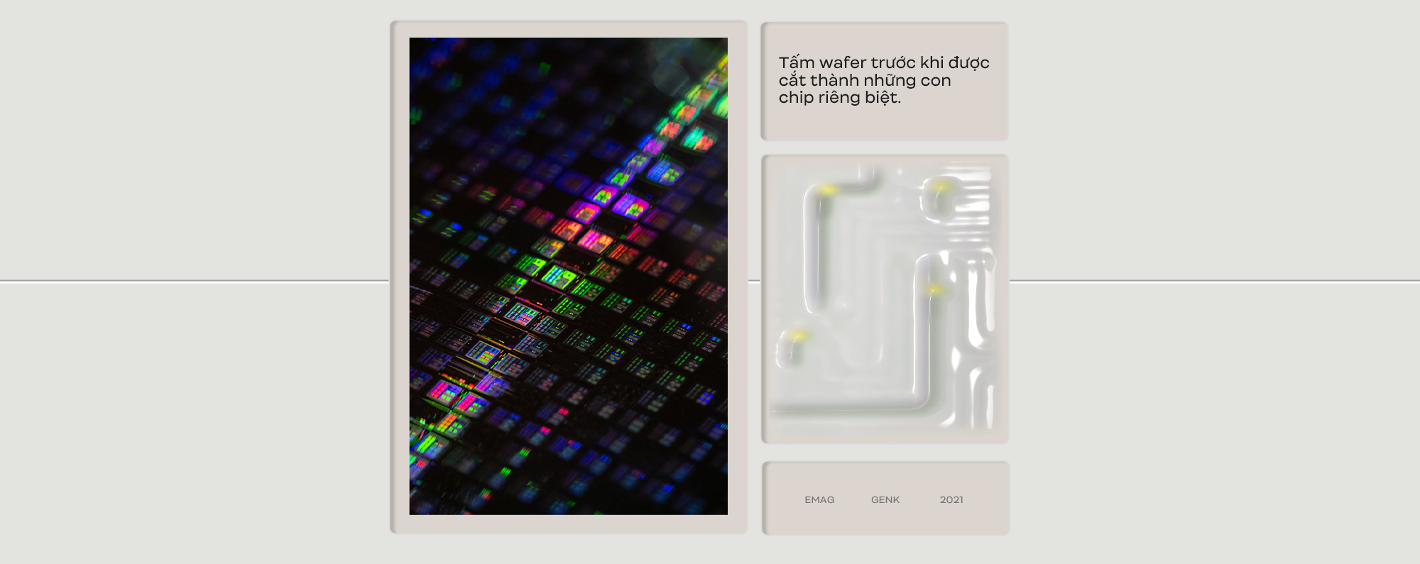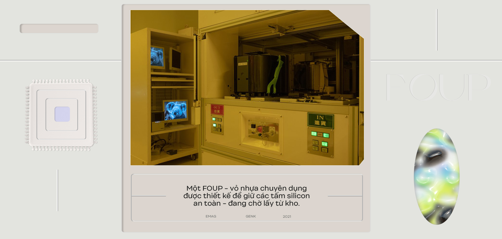 Bên trong trụ sở có thiết kế hình hộp với tông màu trắng đục của nó ở quận Tân Trúc, các kỹ thuật viên trong bộ quần áo bảo hộ màu sáng - trắng và xanh lam cho nhân viên, xanh lá cây cho nhà thầu và hồng cho phụ nữ mang thai - đang đẩy những chiếc xe bằng kim loại bóng loáng bên dưới ánh đèn bảo vệ màu xám xịt. Trên đầu họ, "móng vuốt" - cỗ máy được đặt tên theo một trò chơi arcade cổ điển - đang vận chuyển các hộp nhựa nặng 9 kg chứa 25 lát riêng lẻ thứ được gọi là đĩa bán dẫn (wafer silicon) trên đường ray giữa hàng trăm trạm sản xuất, nơi chúng sẽ được chiết xuất từng cái một để xử lý, giống như cách chiếc máy hát tự động chọn một bản ghi. Chỉ sau 6 đến 8 tuần khắc và thử nghiệm cẩn thận, mỗi tấm wafer có thể được khắc thành những con chip riêng lẻ để gửi đi khắp hành tinh.