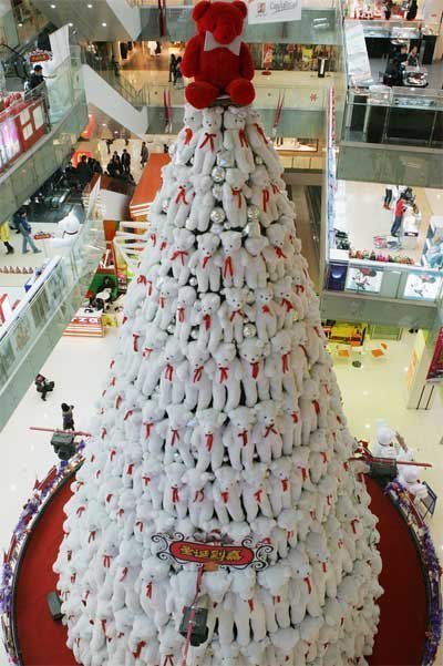 Cây thông Gấu bông tại một trung tâm mua sắm ở Bắc Kinh, Trung Quốc.