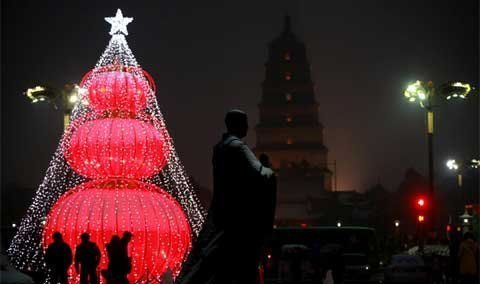 Cây thông Giáng sinh Đèn Lồng ở Xian, tỉnh Thiểm Tây, Trung Quốc.