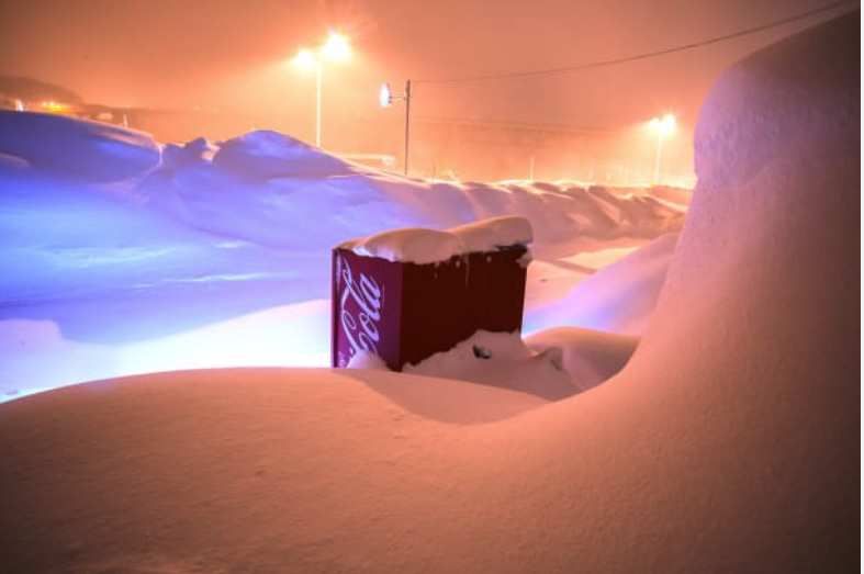 | Những chiếc máy bán hàng tự động vẫn hoạt động tốt bất chấp thời tiết bão tuyết. |