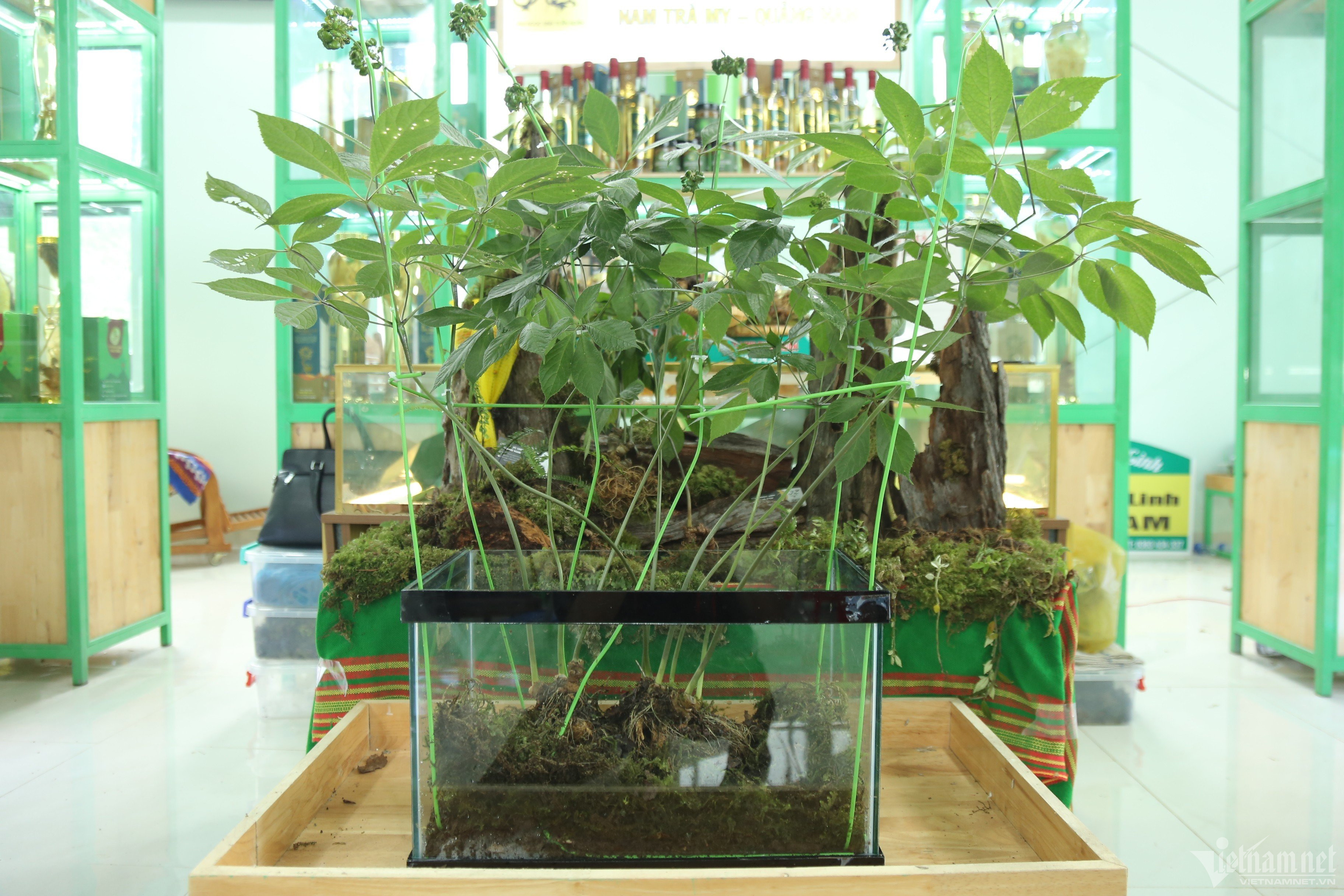 Cây sâm Ngọc Linh 9 nhánh được trưng bày tại lễ hội (Ảnh: Công Sáng)