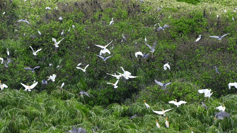 Đến với nơi đây, du khách sẽ được đắm mình trong bầu không khí yên bình, trong lành, xanh mát. Cứ mỗi buổi chiều khi hoàng hôn buông xuống, những đàn cò trắng sẽ lũ lượt bay về và tạo nên cảnh tượng vô cùng thú vị, lạ mắt. Đặc biệt vào thời điểm tháng 4 cũng là lúc đàn có quy tụ với số lượng lớn nhất, lên tới 2000 con.