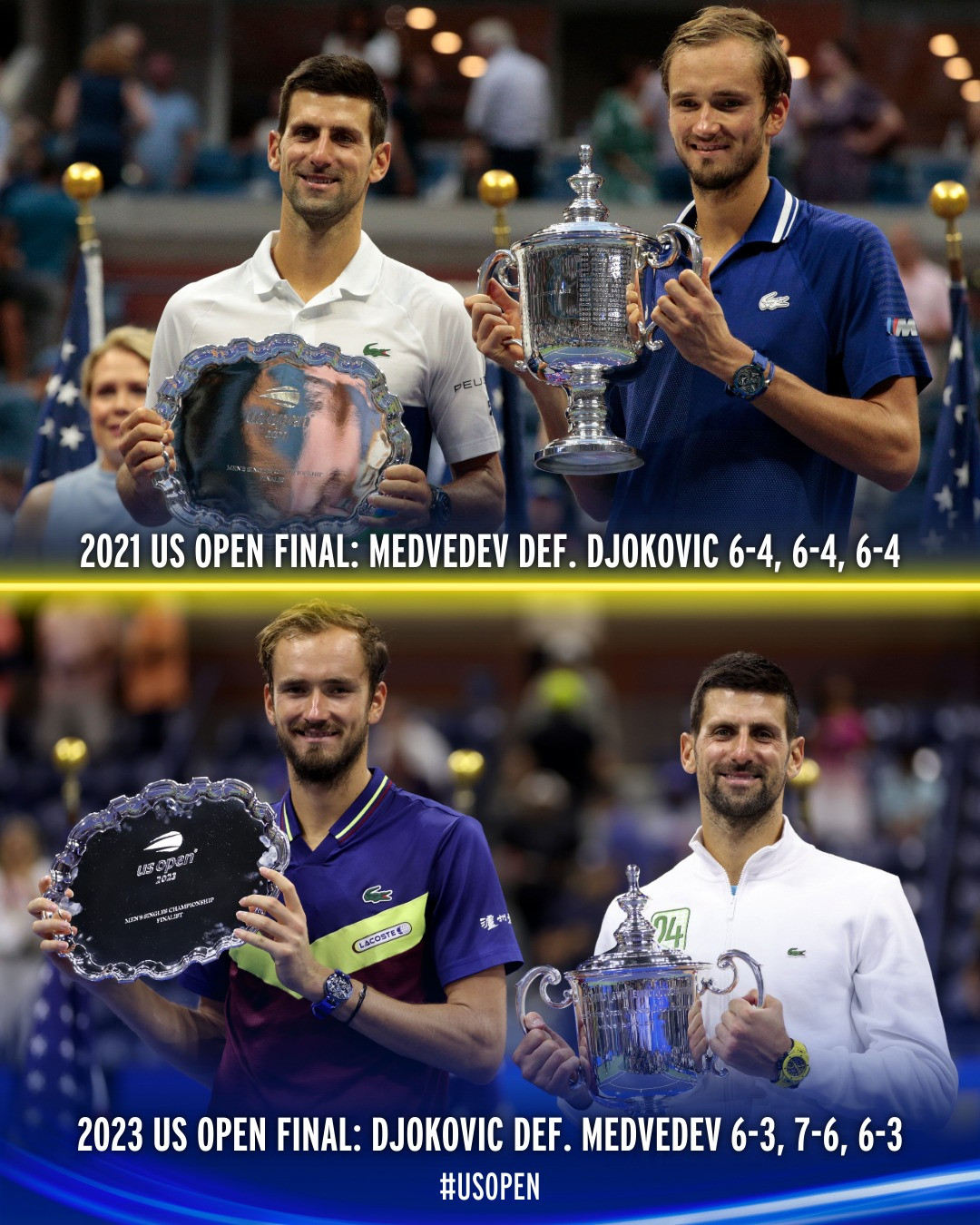 Novak Djokovic đánh bại Daniil Medvedev sau 3 set với các tỷ số 6-3, 7-6(7-5) và 6-3 để lần thứ 4 lên ngôi tại Mỹ mở rộng. Thành tích này giúp Nole kéo dài kỷ lục Grand Slam lên con số 24.