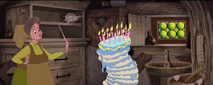 1. Khoảnh khắc mà bà tiên Fauna nhận ra rằng mình đã làm nên chiếc bánh gatô khủng nhất thế giới Disney.
