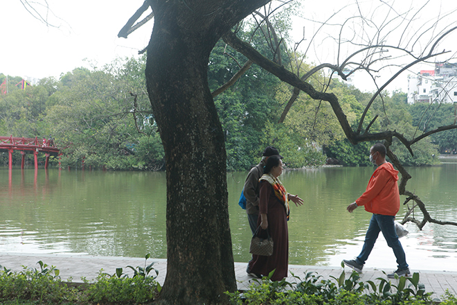 “Những khối vàng lộ thiên” hằng ngày vươn bóng mát, tạo cảnh quan đẹp cho đền Ngọc Sơn, khiến nơi này thêm phần cổ kính.