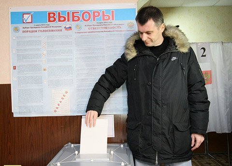 | Ứng viên Tổng thống kiêm Tỉ phú Mikhail Prokhorov thực hiện quyền công dân của mình |