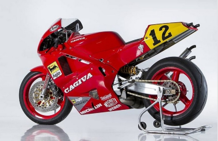 Cagiva V589 từng thống trị các đường đua trong những năm 1980. Nó được trang bị động cơ V4 498cc làm mát bằng chất lỏng, công suất 150 mã lực và dễ dàng đạt tốc độ lên tới 305 km/giờ.