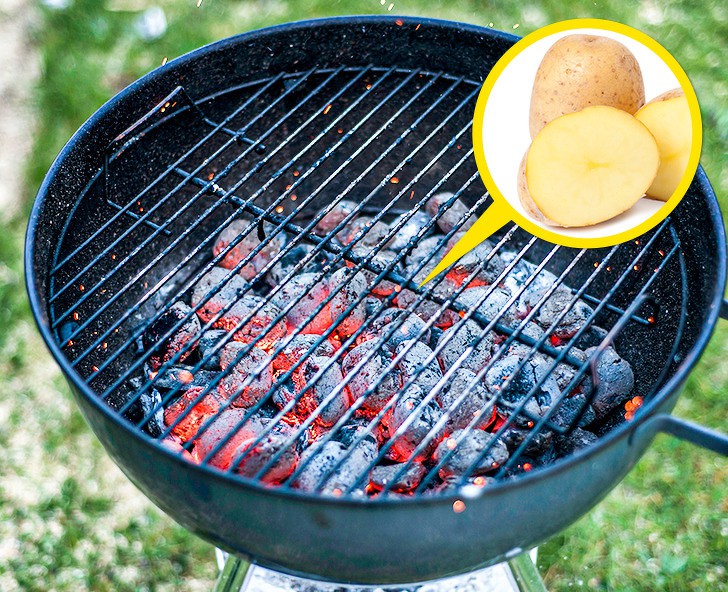 Một củ khoai tây có thể ngăn thịt và cá dính vào vỉ nướng của bạn và giúp bạn tiết kiệm thời gian khi dọn dẹp. Bạn chỉ cần cắt một nửa củ khoai tây, sau đó chà lên vỉ nướng.