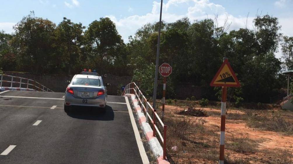 Tiếp theo, đạp ga lên tầm 3.000 vòng, nhả côn từ từ cho xuống 1.500 vòng rồi hạ phanh tay để xe leo dốc. Lưu ý, nhả phanh tay từ từ để xe không bị trôi, quá 30 giây mà không qua được dốc là bị loại ngay lập tức.